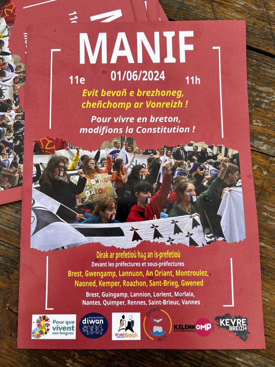C’est pourquoi le collectif Pour que vivent nos langues appelle à des rassemblements au Pays Basque, en Bretagne, Corse, Alsace, Catalogne, dans l’espace occitan et les différents territoires concernés, le samedi 1ᵉʳ juin 2024 pour demander une modification de la constitution maintenant ! Pour que nos langues vivent et que nous puissions vivre dans nos langues !