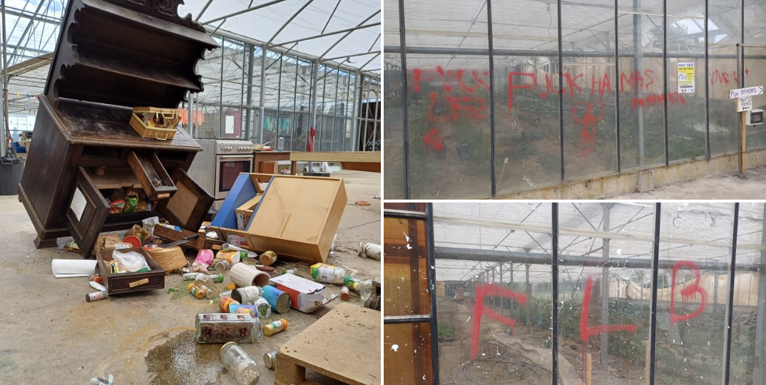 Des dégradations ont été commises ces deux dernières nuits dans les serres de l’association A4, à Lannion (22). Des tags « FLB » et « Fuck Hamas » y ont notamment été peints lors de la première intrusion. Une plainte a été déposée. 1/ pic.twitter.com/neSkv1h2P1