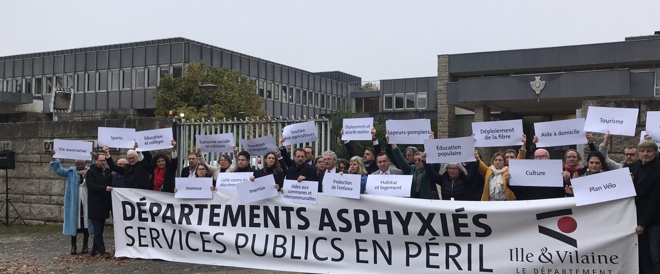 Pour le futur budget 2025, « nous allons devoir tout regarder », concède @JeanLucChenut le président du conseil départemental d’Ille-et-Vilaine. Ce jeudi 07/11, les conseillers départementaux se sont rassemblés symboliquement devant les grilles de leur collectivité, à #Rennes pic.twitter.com/MMwfUX74kb