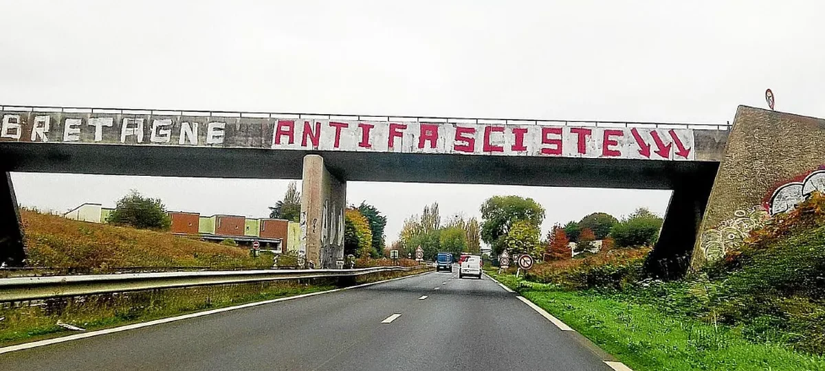 « Bretagne antifasciste » : le message n’a pas échappé aux automobilistes qui empruntent ce trajet. Le 1er novembre 2024, entre 5 h et 6 h du matin, deux individus, équipés de lampes frontales, ont commis un acte de dégradation d’édifice public sur le pont routier enjambant la D 786, sur le territoire de la Ville de Pordic ; mais ce pont est propriété du Département des Côtes-d’Armor. La municipalité de Pordic exprime toutefois « son désaveu », via un communiqué, « face à ces inscriptions à caractère politique imposées à la vue du public de manière non autorisée. Une plainte pour dégradation a été déposée auprès de la gendarmerie de Binic-Étables-sur-Mer ».