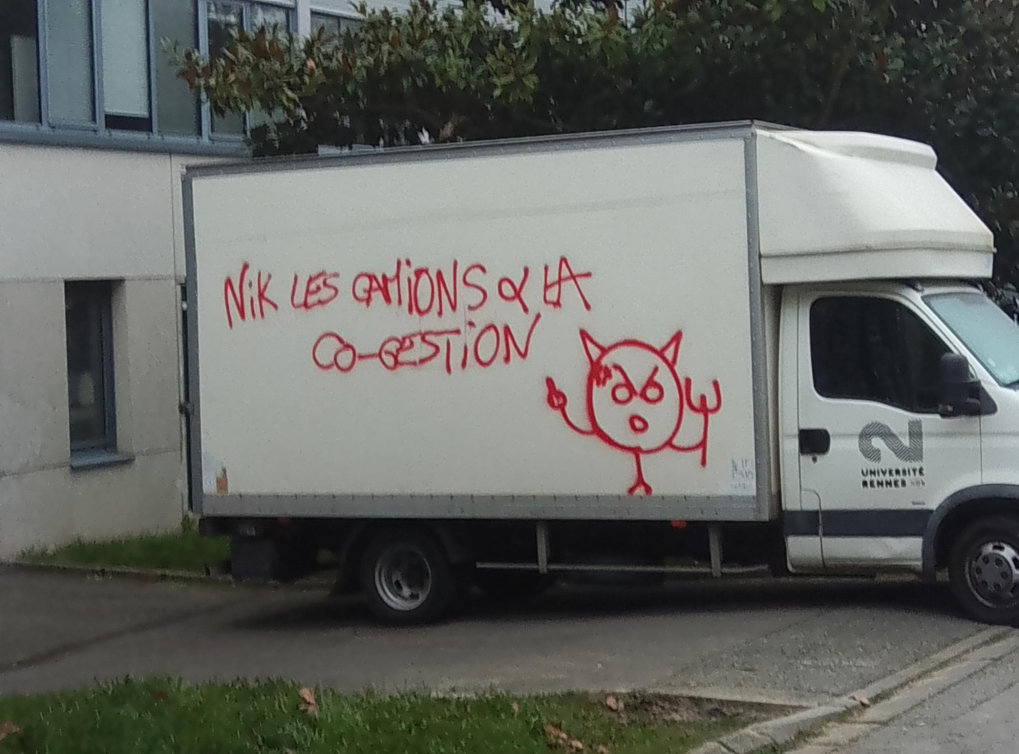 L’université de Rennes 2 est à nouveau bloquée par l’ultra-gauche hexagonale. Les locaux ont été saccagés par des bandes de marginaux. Les slogans anarcho-nihilistes résument ce qui tient lieu de philosophie aux éléments anti-sociaux qui prospèrent dans cet établissement.