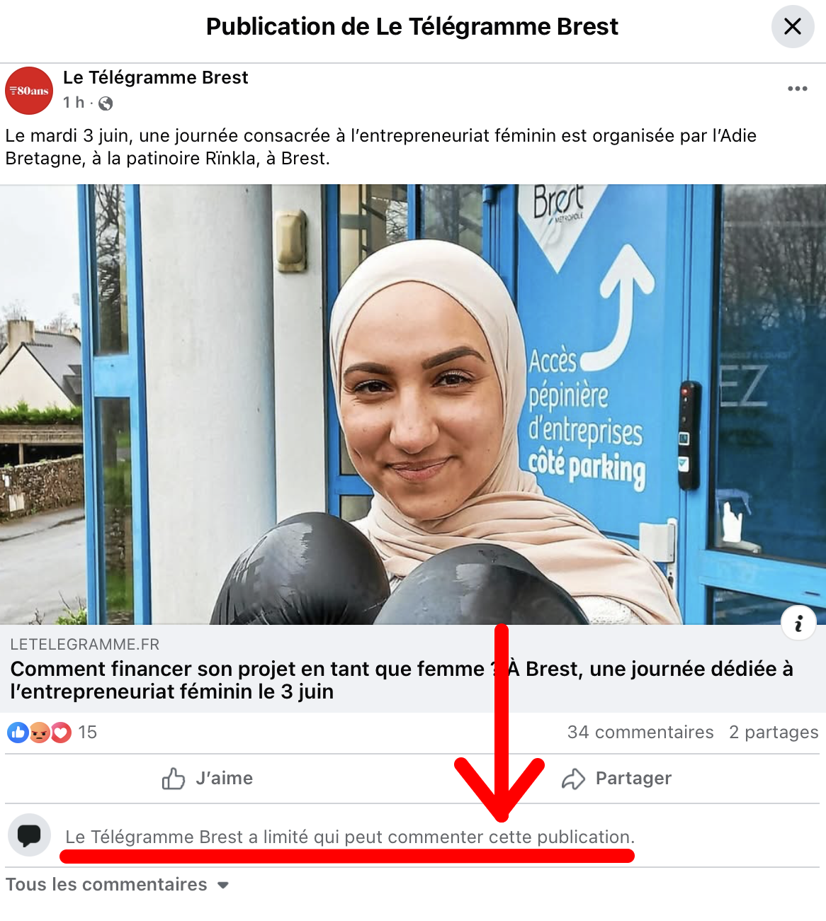 Une promotion de l’islamisme par la rédaction du Télégramme qui ne passe pas. Alors que le journal d’État tentait de banaliser le port du voile islamique à Brest à la faveur d’un article, les lecteurs ont vivement réagi et dénoncé une collusion avec l’intégrisme musulman. En réaction, le journal a tout simplement interdit au public de faire part de sa colère et fermé les commentaires figurant sur son compte Facebook.