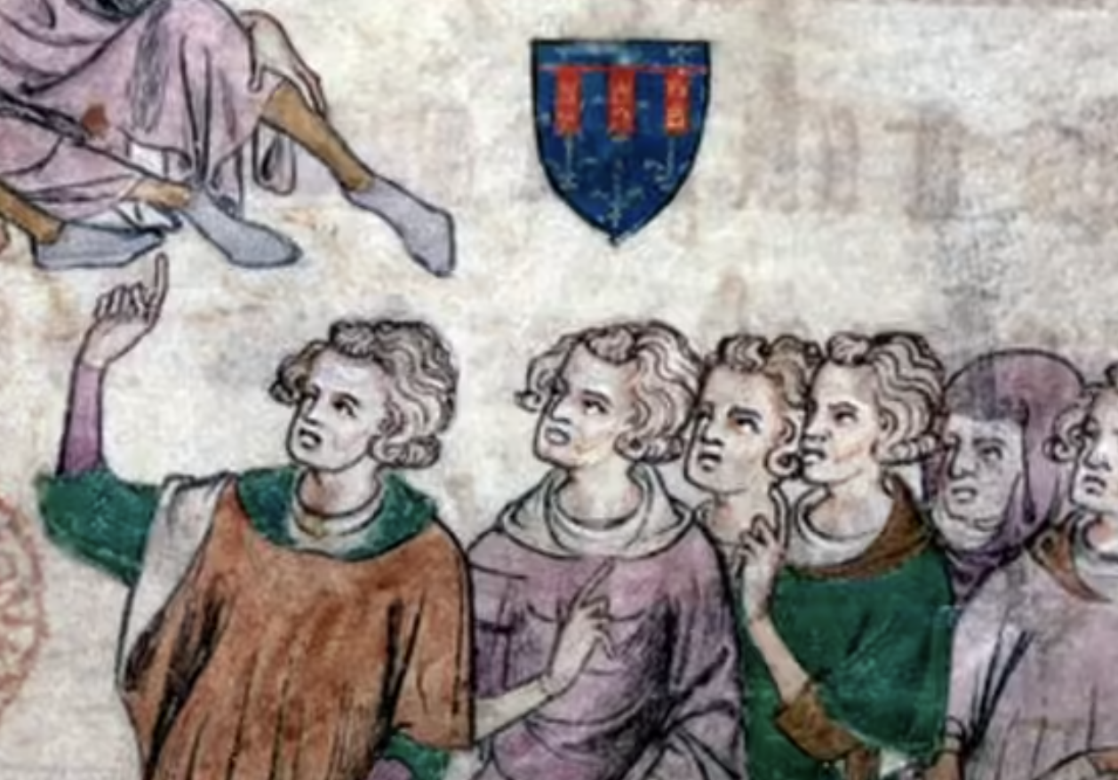 Robert III d’Artois, sous son blason, lors du procès de l’héritage du comté d’Artois