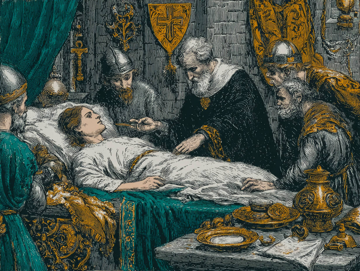 Ar c’hristen, ar marc’heg eo a zispleg amañ c’hoant taerañ e ene. Neuze, an tad eo a lez e galon da gomz. Yann II a gare kalz e verc’h Alienor, « leanez e Fontevrault », ha keuz bras en doa d’he disparti. Kreskiñ a ra he leve-bloaz, a oa dister a-walc’h evit ur briñsez, hag e laes dezhi, evel tra-eñvor brizius, « va c’hroazig-aour », emezañ, « a zougan em irc’hier, hag am eus degaset eus an Douar Santel ». Sterniet e oa war ur grusifi graet gant koad eus ar Wir Groaz.