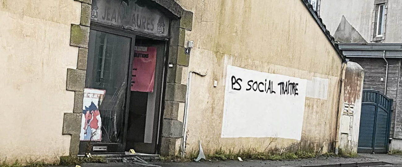 Les faits remontent à la nuit du 21 au 22 janvier 2025. Les prévenus, un homme de 40 ans et une femme de 31 ans, ont aspergé d’essence des pneus et palettes devant la porte du local, situé route de Kallag (Callac), et y ont mis le feu. La façade a été taguée « PS social traître », reprenant la phraséologie de l’ultra-gauche. Les accusés ont reconnu les faits, expliquant agir par « coup de colère » après le refus des députés PS de voter la motion de censure déposée par La France insoumise contre le gouvernement Bayrou.