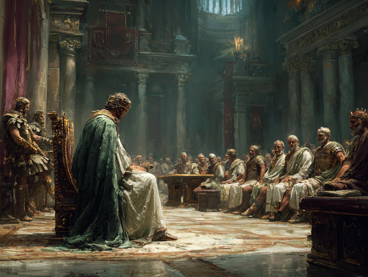 Traqué sans relâche, Caratacos se dirige vers le nord et cherche asile chez Cartimandua, reine des Brigantes, une puissante tribu du Yorkshire actuel. Alliée et cliente de Rome, Cartimandua choisit la realpolitik : elle le fait arrêter et livrer enchaîné aux Romains en 51. Cet acte de trahison lui vaut des récompenses impériales mais la discrédite dans la mémoire celte. Conduit à Rome, Caratacos est destiné à parader lors du triomphe de Claude. Tacite relate avec admiration son attitude : loin d’être brisé, il observe la capitale avec étonnement et dignité. Le moment culminant est son discours devant l’empereur et le Sénat. Sans supplier, il prononce des paroles fières :