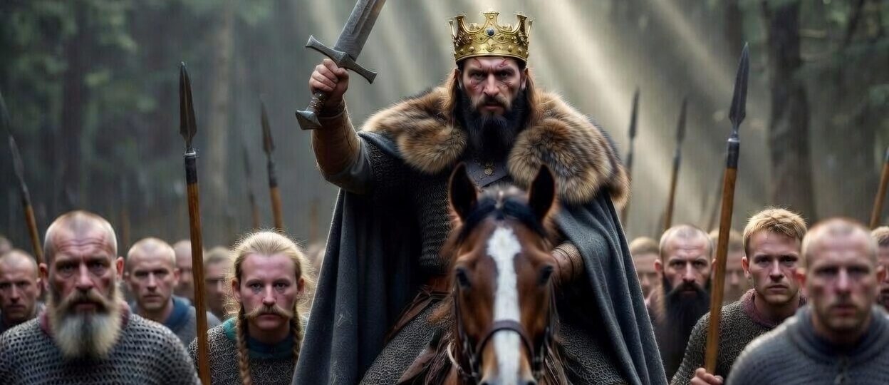 Alan II naît vers 630 dans une Armorique qui, depuis le Ve siècle, est un bastion breton de la culture Romano-chrétienne. Contrairement aux Francs – ces barbares venus de l’est qui ont saccagé l’Empire romain d’Occident, renversé ses institutions et imposé leur domination brutale sur la Gaule –, les Bretons ont maintenu vivantes la mémoire impériale et leur mission évangélique. Dès les migrations du Ve siècle, ils ont construit des royaumes celtiques et chrétiens en Armorique, contenant ainsi la dévastation franque. Son père, Saint Yudikael, roi de Domnonée et haut-roi des Bretons, incarne déjà cette résistance. Yudikael, après un règne marqué par la sagesse et la fondation de monastères, abdique pour se retirer dans un cloître (probablement Sant-Neven), transmettant le flambeau à son fils Alan II. La mère d’Alan est souvent identifiée comme Morone, une princesse issue des grandes lignées domnonéennes qui règne sur les deux rives de la Manche. Les généalogies bretonnes traditionnelles le rattachent directement à la dynastie issue de Konan Meriadog, via des ancêtres comme Hoël III et Aldroen. Il est parfois présenté comme frère ou proche parent des saints Judoc et Winnoc, évangélisateurs dont la sainteté renforce le caractère sacré de la monarchie bretonne. Alan II hérite ainsi d’un royaume de Cornouaille (correspondant approximativement à l’actuel sud du Finistère et à l’ouest du Morbihan, avec des centres comme Kemper ou Karaez) et d’une suzeraineté sur les autres principautés bretonnes : Domnonée au nord et Broërec au sud-est. Ces entités forment la nation bretonne unie sous un haut-roi, gardienne de la langue, du droit coutumier celtique et de la foi chrétienne authentique.