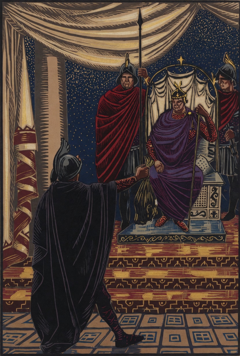 Louis le Pieux, nouvel empereur, ne tolère pas l’unité de l’État breton aux frontières de son empire. La Bretagne représente un enjeu stratégique pour sécuriser la Neustrie. En 818, après des attaques répétées sur les marches, Louis décide d’intervenir personnellement. Il rassemble une armée composite et marche vers Prizieg. Avant l’assaut, il envoie l’abbé Witchar (ou Witkar) en ambassade. La rencontre, rapportée par Ermold le Noir dans son poème In honorem Hludowici, devient légendaire. Morvan reçoit l’envoyé avec son épouse. Selon le récit poétique, celle-ci, assise sur les genoux du roi, dicte un discours de défi : « Va promptement trouver ton maître, et répète-lui mes paroles. Je n’habite point sa terre, je ne veux pas subir sa loi. Qu’il règne sur les Francs, soit. Morvan règne sur les Bretons. […] Les champs que je cultive ne sont pas les siens, et je n’entends point recevoir ses lois. » Ce refus catégorique scelle l’échec des négociations.